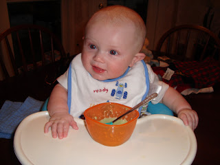 Davis also tried avocados this week! Tonight was the third time and 3 times is the magic number! He did great tonight. He sat in his high chair for the first time. I mixed the rice cereal and avocado together. He seemed to enjoy it! He's getting to be a big boy now. He's growing so fast! I am so in love and fascinated with him every singe day!